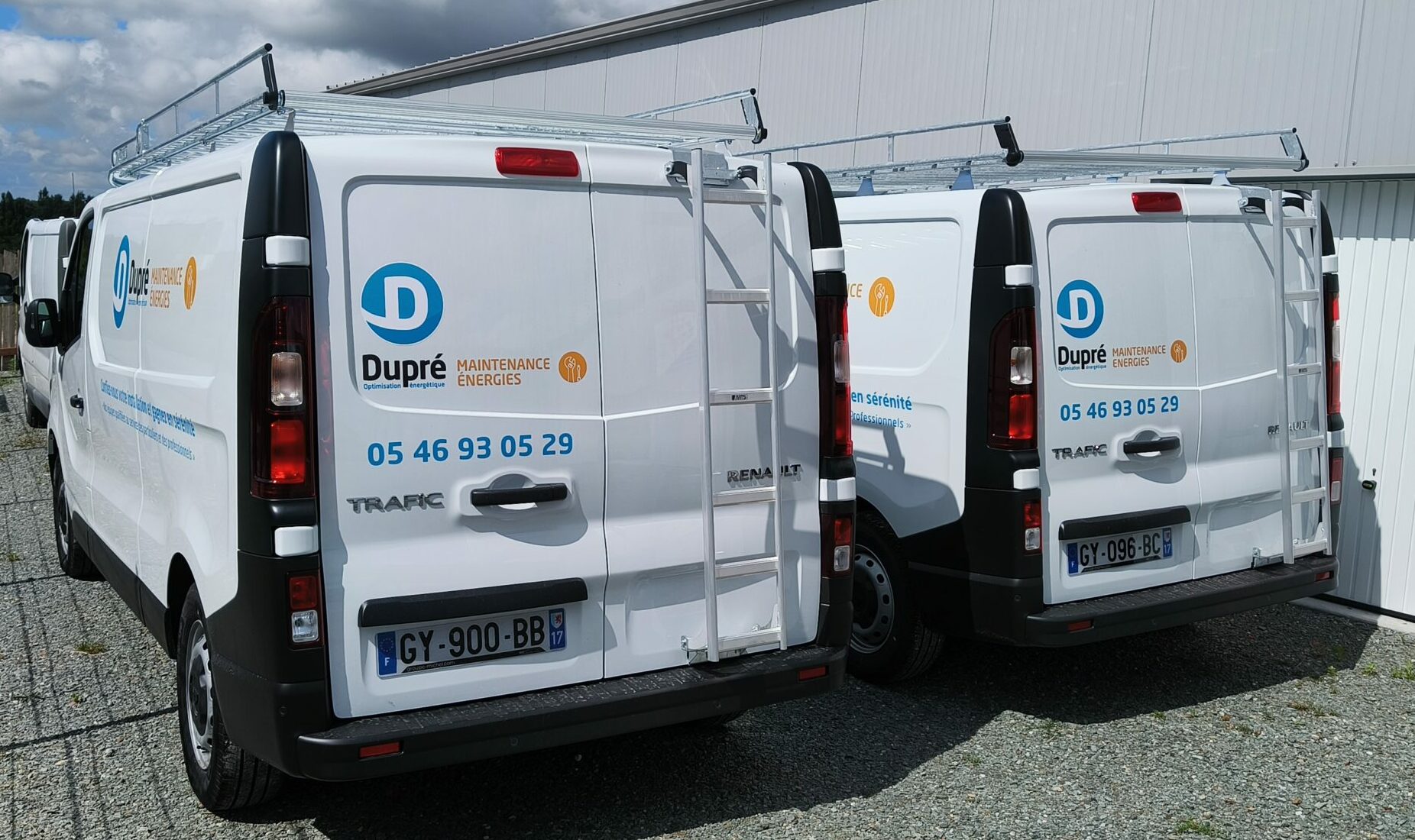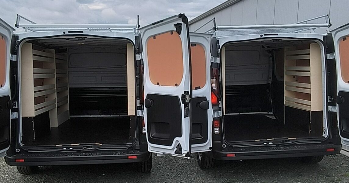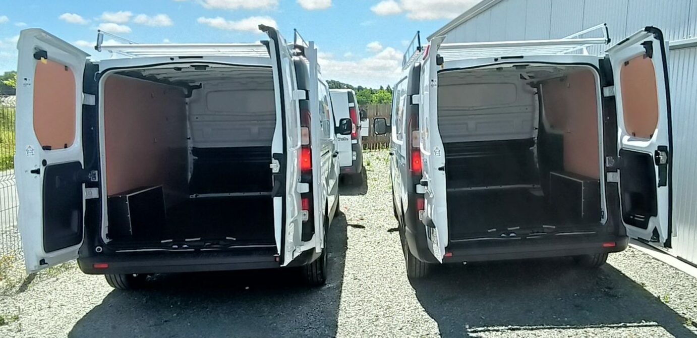 Renault trafic de l’entreprise Dupré : deux camions aménagés pour des plombiers